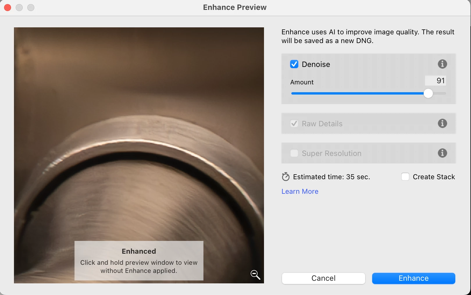 Notes: You don't need to use "Enhance Details" on every image. It's best used on images where you believe there might be a noticeable improvement in details, especially in areas with fine textures or patterns.
