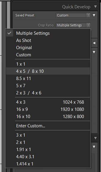 P: Ability to set the default crop ratio in the Develop module crop tool