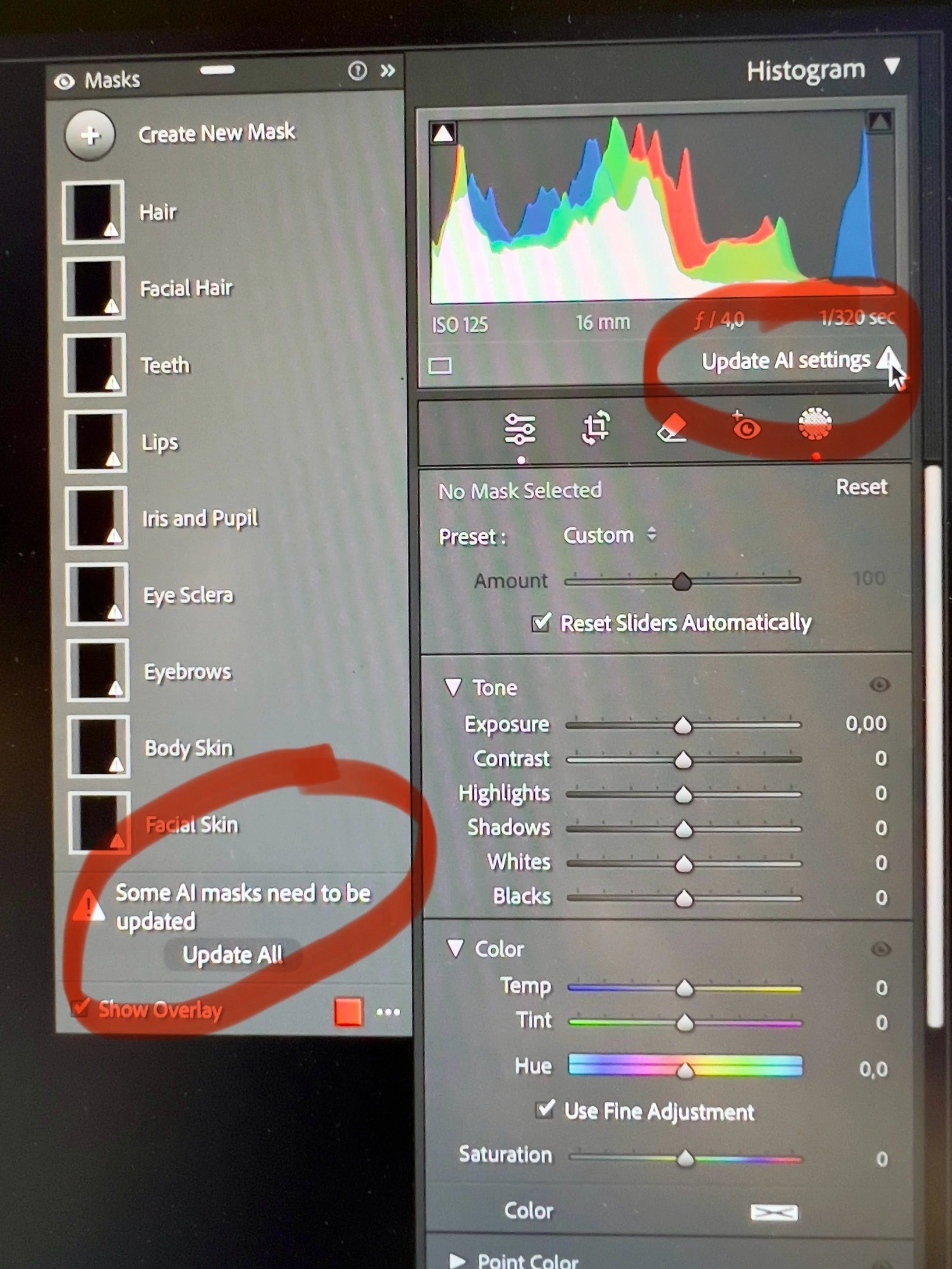If I apply the Adaptive Portrait preset (e.g. Polished Portrait) at import - I get exclamation mark and message all AI settings need updating on EACH image after import. I think it should not work like that, moreover that I don't know of any way to update AI settings for a batch of multiple images at once. Please fix.