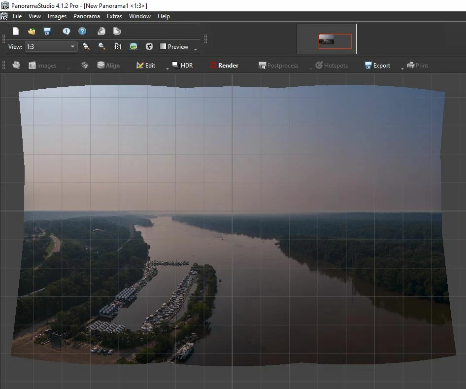 Stitching panos is especially problematic when there's a clear blue or otherwise featureless sky. Often, in fact virtually always, LrC chops off corners of the sky that were in the original captures. It's also nearly impossible to shoot a 3x3 with the horizon perfectly centered, which is normally desirable to maintain verticals. LrC will essentially chop off the entire top of the sky and screw up the perspective of the remainder. The only workaround is to center the captures slightly below the horizon so the top row has some ground included at the bottom. Oh, and a large expanse of water in the lower portion of the pano can also be problematic. Before LrC added the pano feature, I had been using PanoramaStudio Pro (I'm currently using v4.xx), which has an option in its initial Align dialog to "place non-aligned images using metadata." This evidently reads gimbal position metadata from the files, and I don't believe I've ever had it fail. But using that app involves a much slower, more complex workflow - export from Lr, set alignment, view initial result and tweak adjustments if necessary, render the full-res pano, export a perspective projection from it (usually), then manually import that image to LrC as a TIFF for final processing. I'd really love it if LrC had the ability to read that gimbal metadata in the same fashion. Here's one example of what LrC often generates. That top right corner wasn't missing, LrC just mangled it. Like I said, it happens virtually 100% of the time when the sky is relatively featureless. The second image is the same 9 exposures stitched with PS4Pro using the metadata feature. And you might also notice that it automatically corrected the horizon position, which was actually above-center in the original captures, so I don't have to use a transform to fix the verticals. PS4Pro will always render multiple row panos using a spherical projection, but then allows numerous other projections to be generated and exported from it. Anyway, I'd love it if LrC had the ability to read that gimbal metadata and stitch all my drone panos flawlessly, not just the ones with cloudy skies and no large expanses of water.