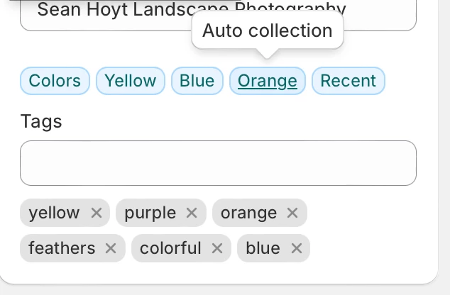 If I click on the Orange collection box (blue), it takes me to the list of members within that Smart (auto) Collection