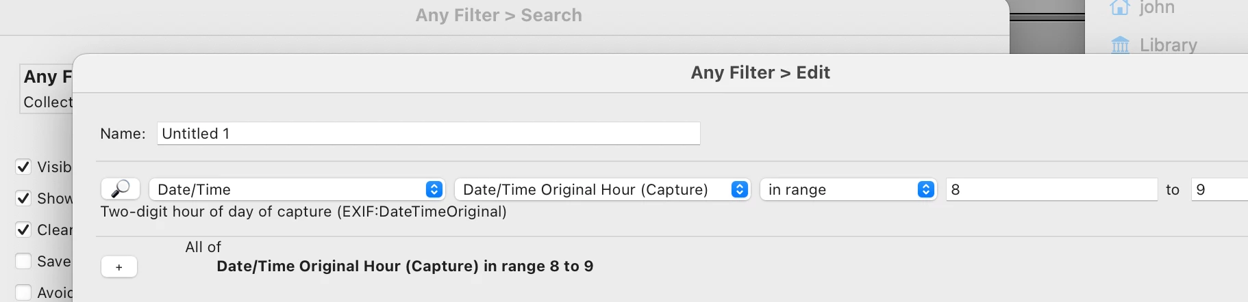 Currently, I can only specify the date itself, which means I end up with a single smart collection containing all the photos from September 22, 2024, without the ability to differentiate between dive times.
