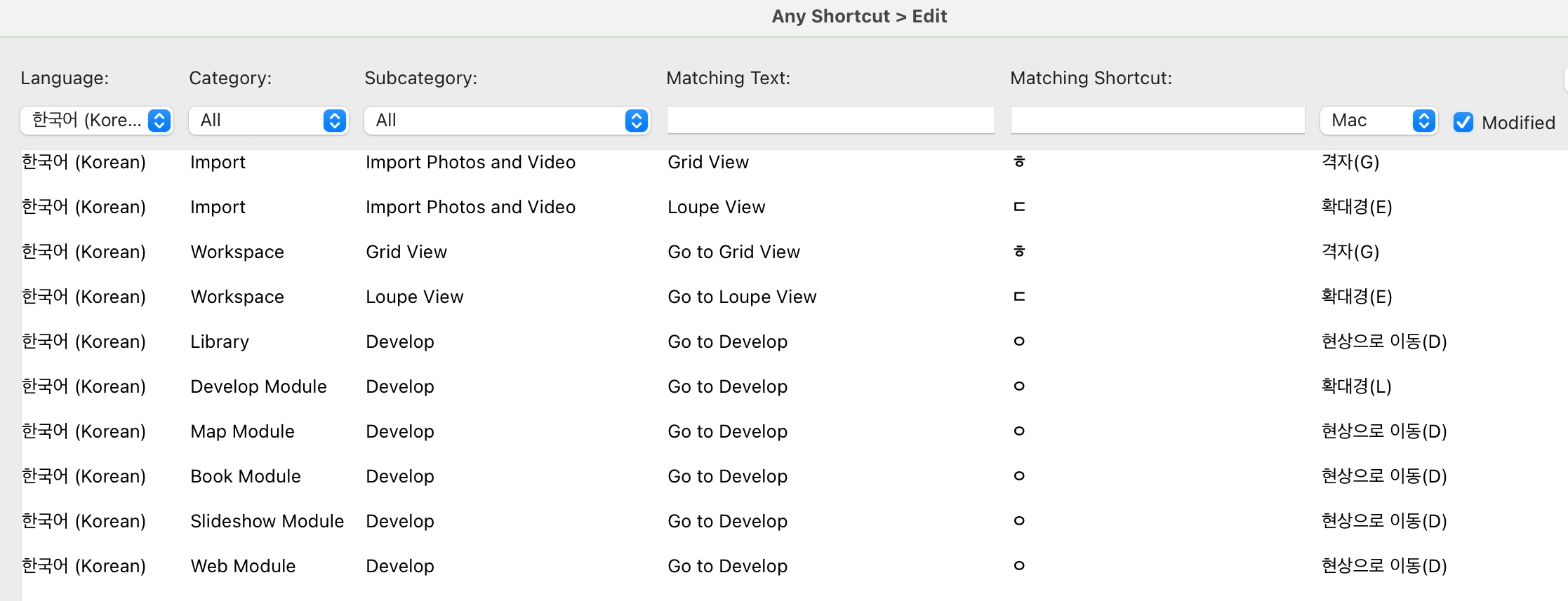 When using Lightroom, shortcut keys do not work while inputting Korean.