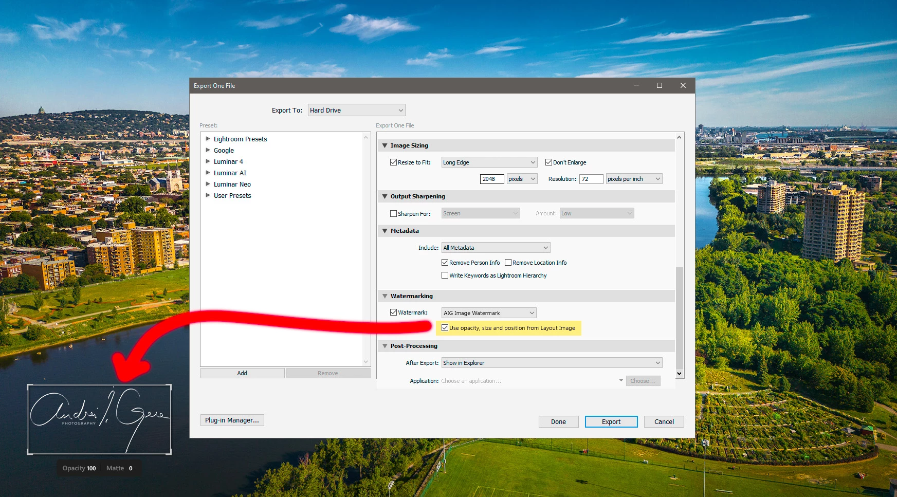 I am using Lightroom Class version 11.4.1in my Mac Monterey. I am trying to see if we can change the anchor points of watermark for each of the photo while exporting multiple photos using the export button. Because if i export all the photos with the same anchor point in certain photo the watermark is placed over the face.