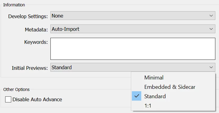 Hi there, does anybody know if there is a possibility of auto-creating a smartpreview while autoimporting (it only allows 1:1 previews)? I already tried a plug-in called "folder watch" wich allows smart-previewss at autoimport but also auto-creates 1:1-previews (can't be adjusted) which makes the plugin usless for me because the rendering process in this case takes way to long 😞 any ideas?