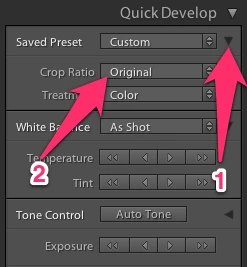 I realize a Crop Ratio is available in the Quick Develop panel, but that's a bit cumbersome as the general crops need to be made before working through each photo. Some users like to crop as a last step after the bulk of other adjustments have been made.