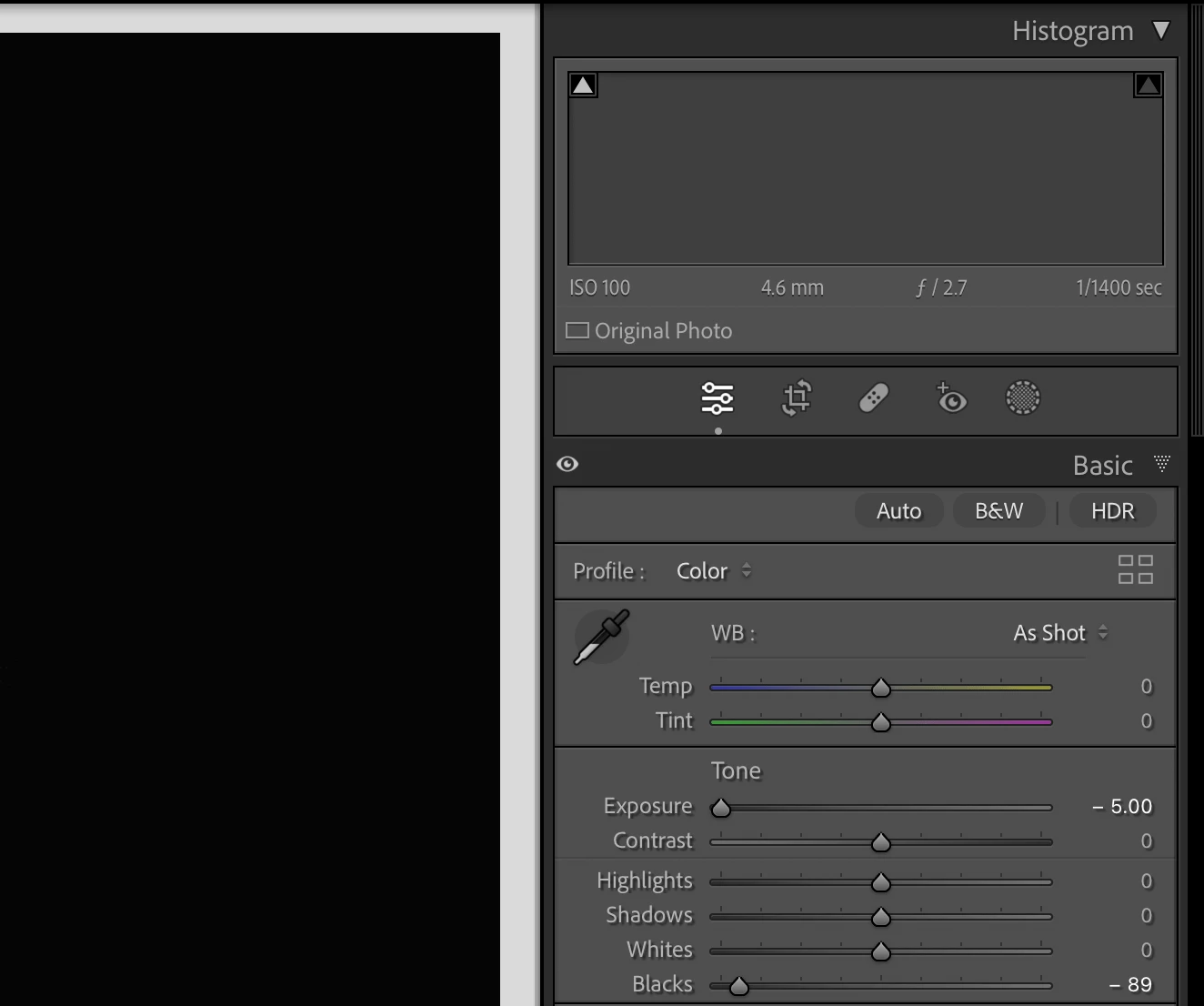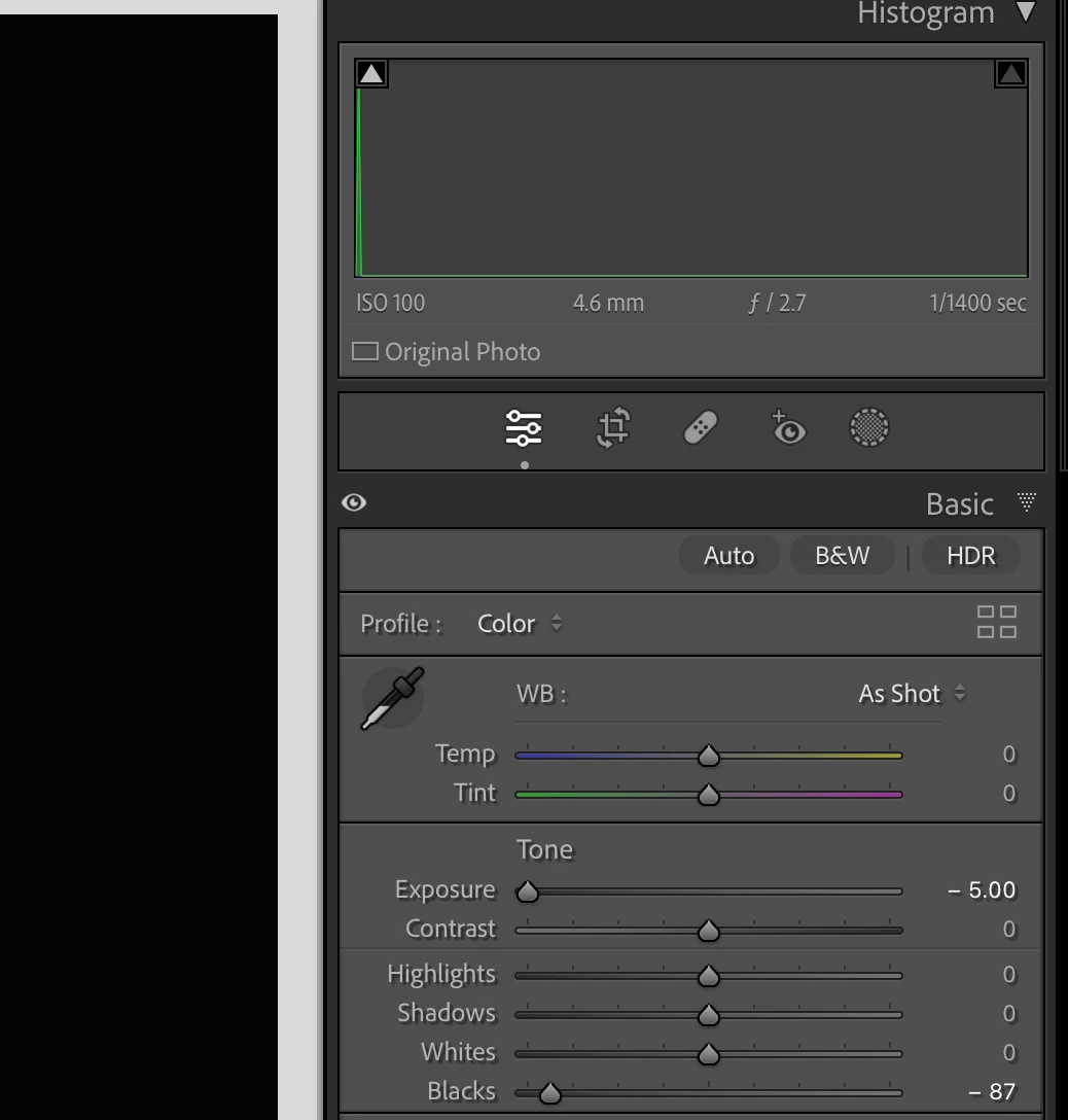 P: Brighten the Histogram as LrC 13.0 histogram is much darker than LrC 12.5