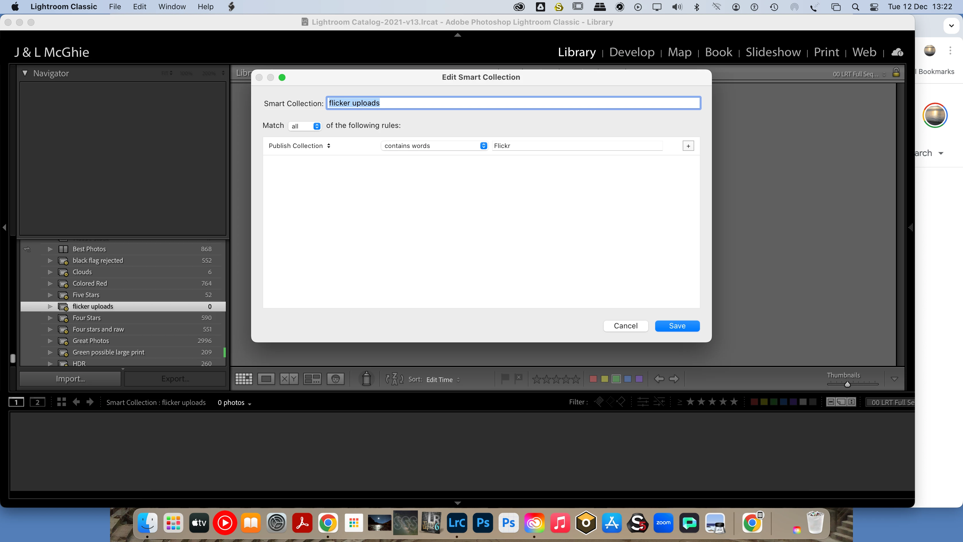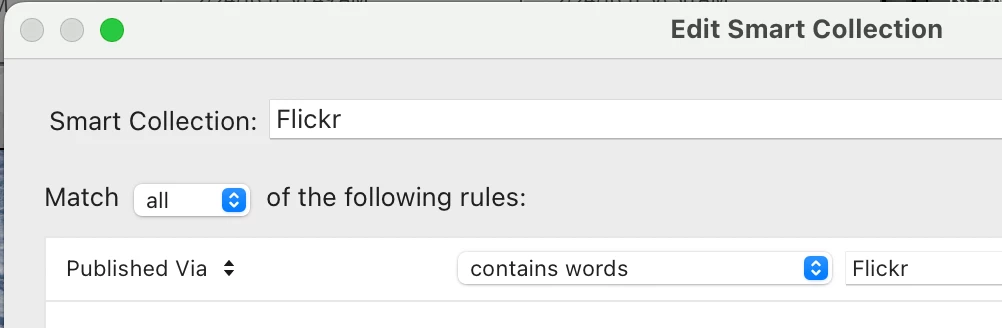 I was trying to create a Smart Collection to search and identify all my photos ithat I have uploaded to Flickr. Flicker photos are identifed as such in the 'History' section in the devlopment mode with the following: Publish - Flickr (16/8/2023 09:26:15). A Smart collection, it seems, is unable to read this identification marker.