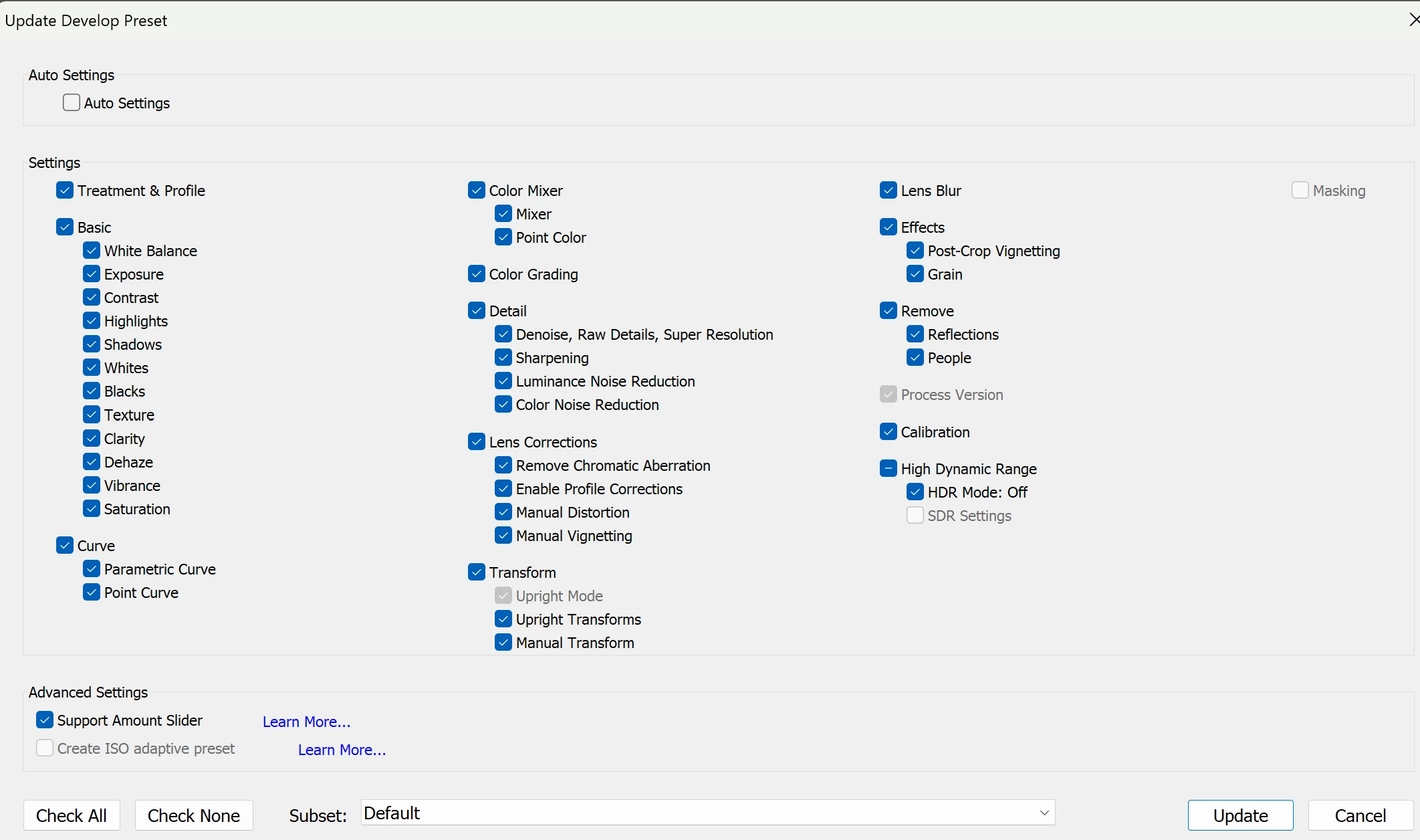 In copy/paste, I can include a crop. In a preset, I can included everything in the 'copy' except 'crop'. Allowing this would be very helpful in processing a batch of mixed/similar images, as you could set up a number of temporary presets to be multiple crop/paste 'buckets'. For image type 'A', use preset 'A'; image type 'B', use prest 'B'; etc. (crop aspect ratio is not a solution, actual crop is needed).