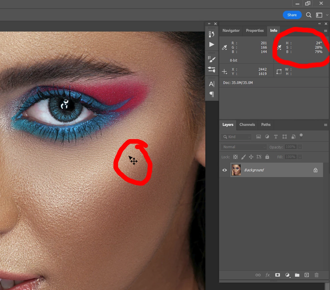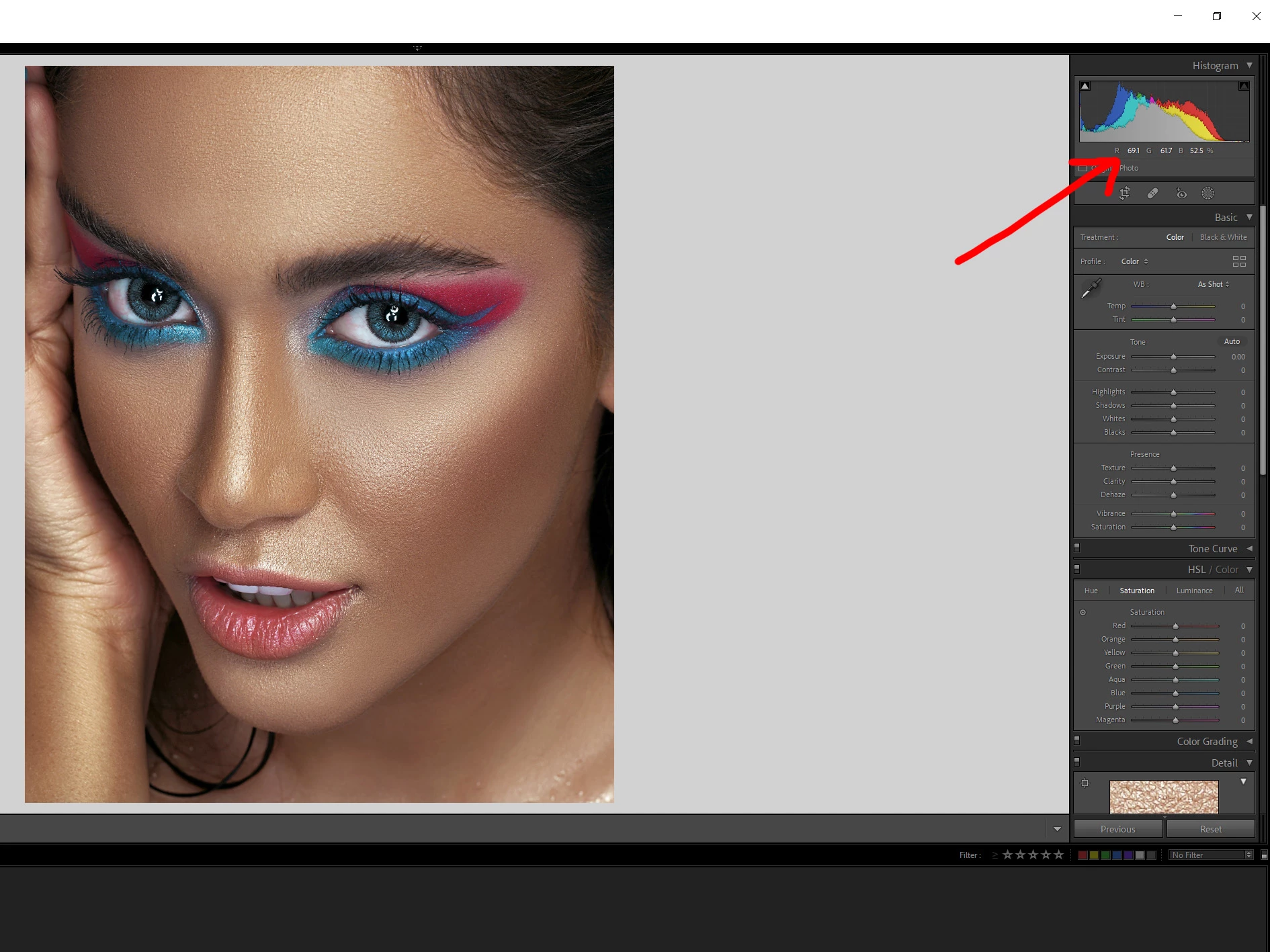 It is a pretty time consuming to import photos to Photoshop every time to check the hue on peoples faces, when skintones are crucial.