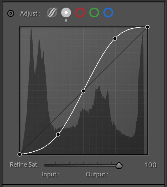 This S shaped Custom Curve was created in LrC 12 and this curve woks efficiently for the underlying Histogram.