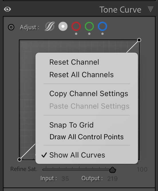 P: Implement right click option to "Draw All Control Points" to a curve/channel.