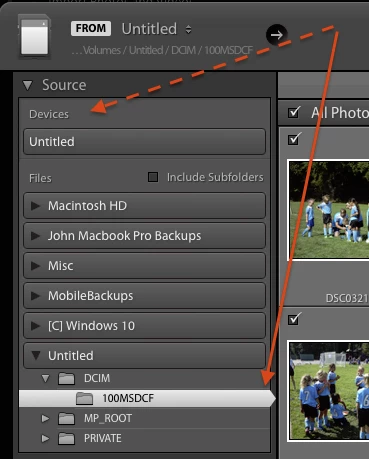 A couple of months ago, I started to see similar problems during import, even when using only one card (jumbled up capture times, random ordering, sideways turning, and duplication of shots, with bogus capture times). It now happens all the time. For me , the solution was to initiate the import not from the “Devices” area of the “Source” panel (where the card shows up with the Camera name), but from the “Files” panel below that (which requires drilling down to the specific folder in the card where the pictures are (see red oval below). None of the usual fixes (deleting preferences, updating to latest version, etc.) worked for me.