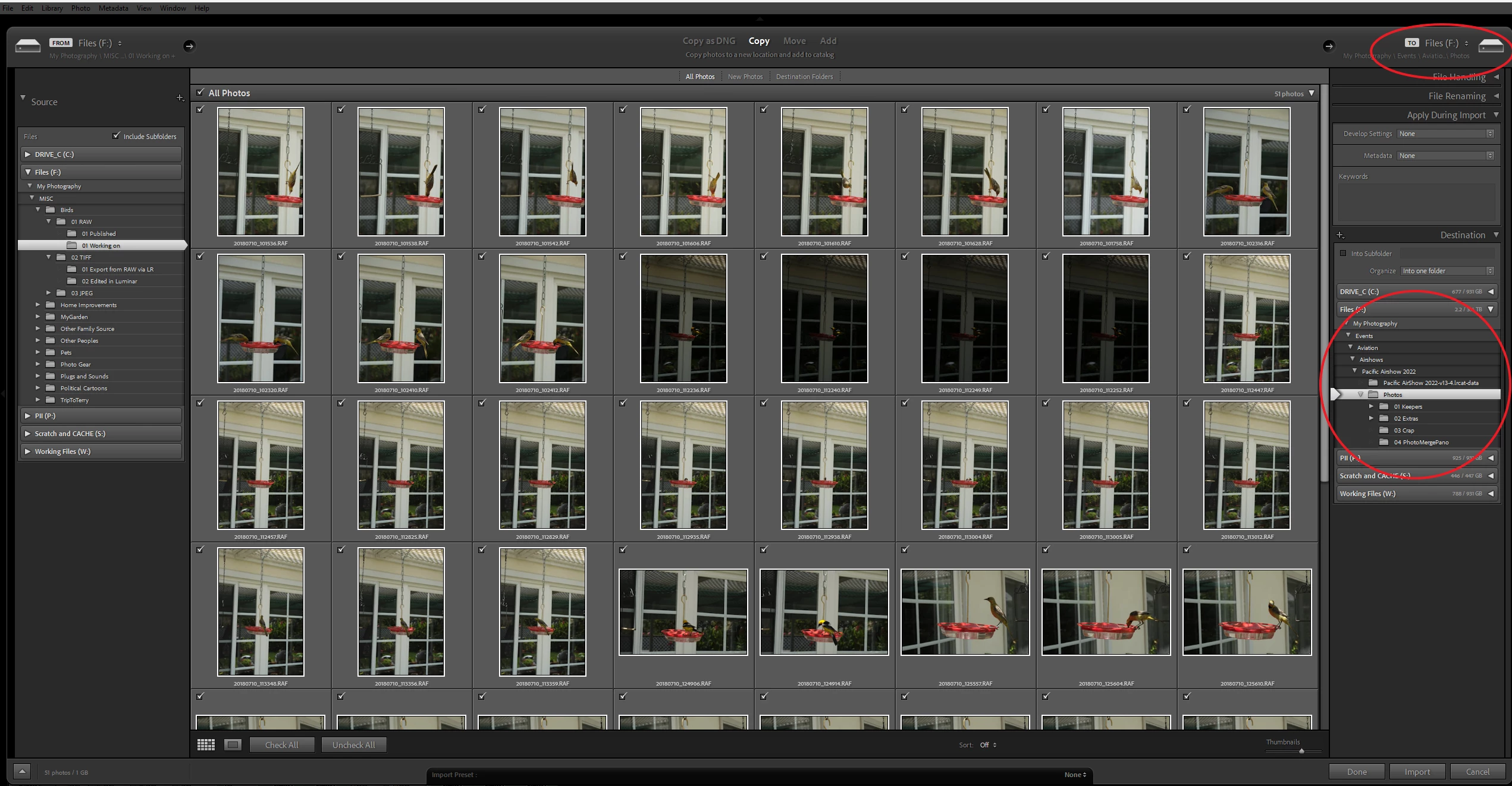 Now the default value is my last import folder (e g "2024/08/02") and I have to click "Other destanation", get thrown out into Windows Explorer, go back up one level, press "New folder" and create the new folder.