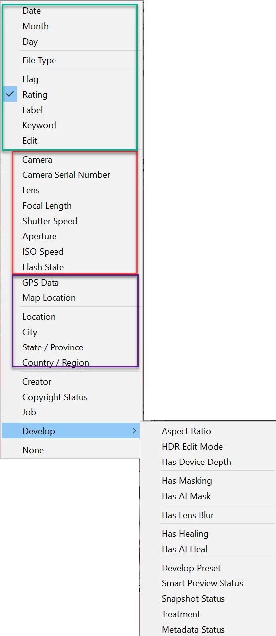 Attached is the present where there's only sub-menu for Develop (which is good). Hopefully the development team will add one or two groupings .. or even have a Windows like Explorer Quick Access group users could add to for frequently used selection.