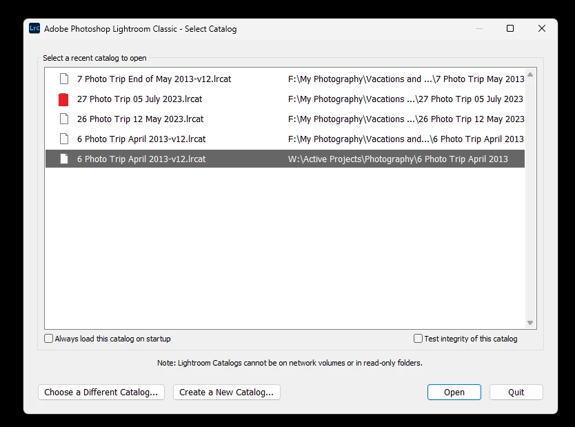 In the optional Select Catalog screen, add a flag to indicate a catalog is locked. THis could be simply filling in the file icon in red.