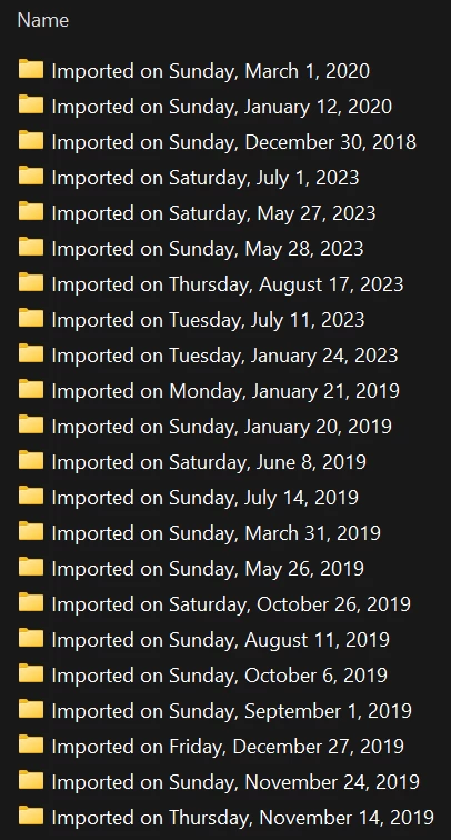 These names are utterly useless for finding an import backup that contains a specific date and the date created/modified is not helpful.