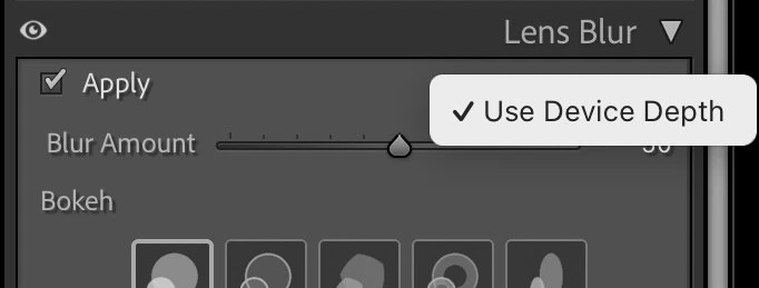 In the Develop > Lens Blur panel, could you please make the 'Use Device Depth' option status always visible. E.g.: