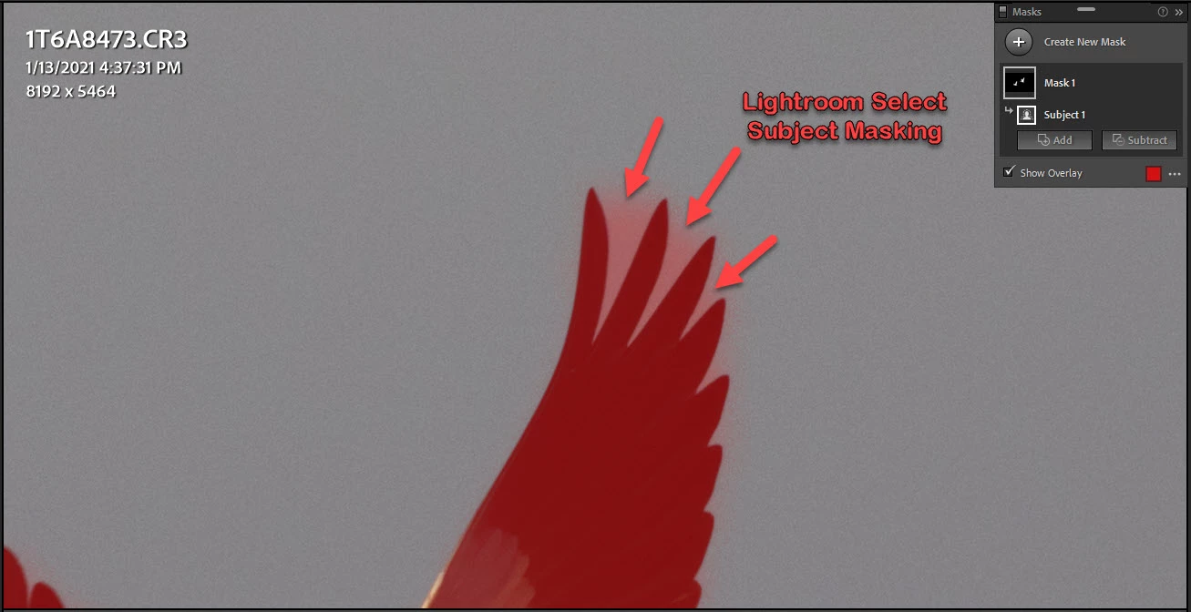 I love the new masking in Lightroom Classic but I'd like to see an improvement in the subject selection for birds (particularly the feathers). The subject selection will select the bird but also select the areas between the splayed feathers on the wings. Can this be corrected to select only the bird?