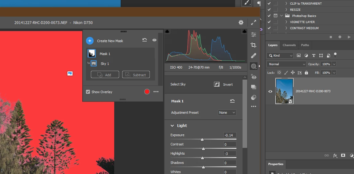 3. In the TIFF, select the mask and set the mask's Exposure = -4.