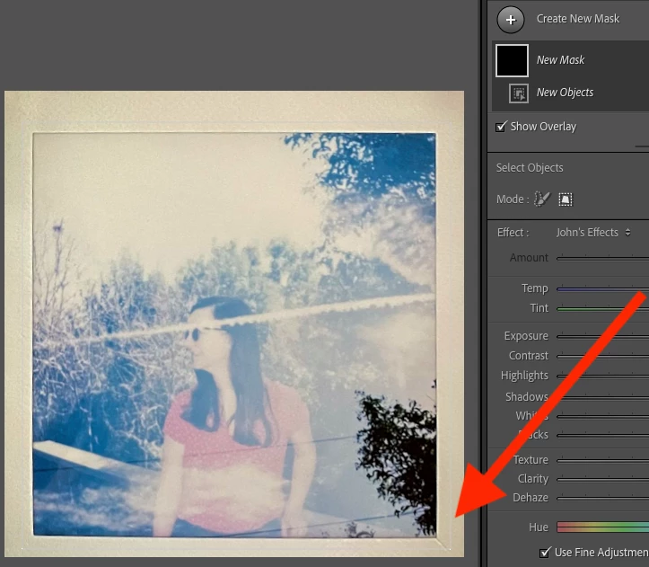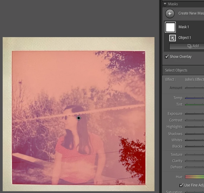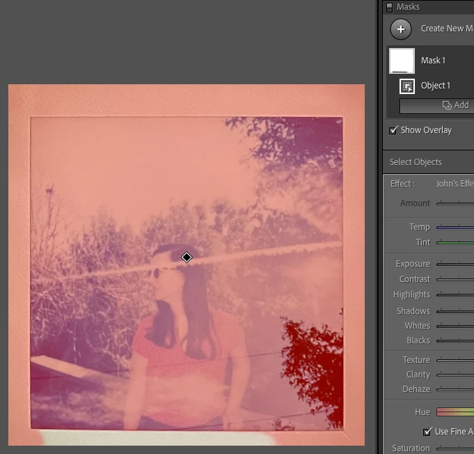 Dragging a rectangular Object-mask selection (faintly visible) around the original Polaroid image: