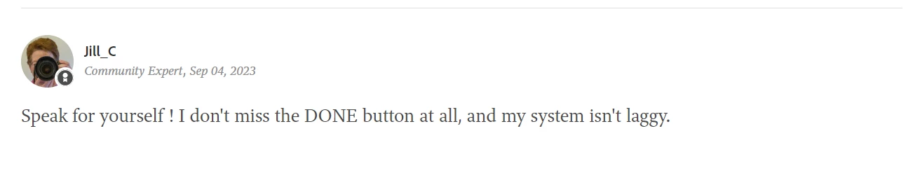 "Done" button on the "T" panel doesn't show up anymore when in crop or masking tool. I'm missing it.