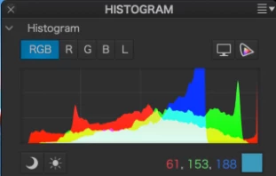 The screenshot is to help you understand what to add in the histogram with the possibility of selecting the single RGB channel.