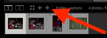 Window > Go Back / Forward: These commands maintain a history of the 20 last used sources (folders and collections) and move through that history.  They also appear as arrows in the upper-left corner of the filmstrip: