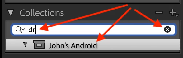 1. Use the Filter Collections box in the Collections panel to quickly find the desired collection set:
