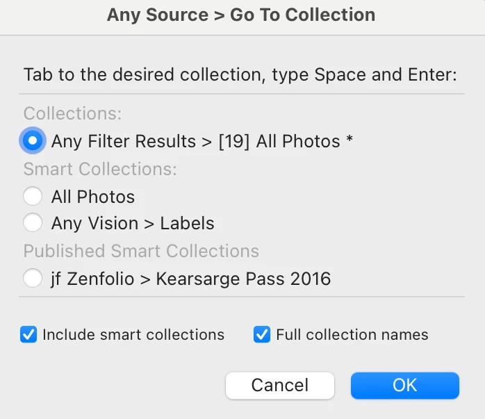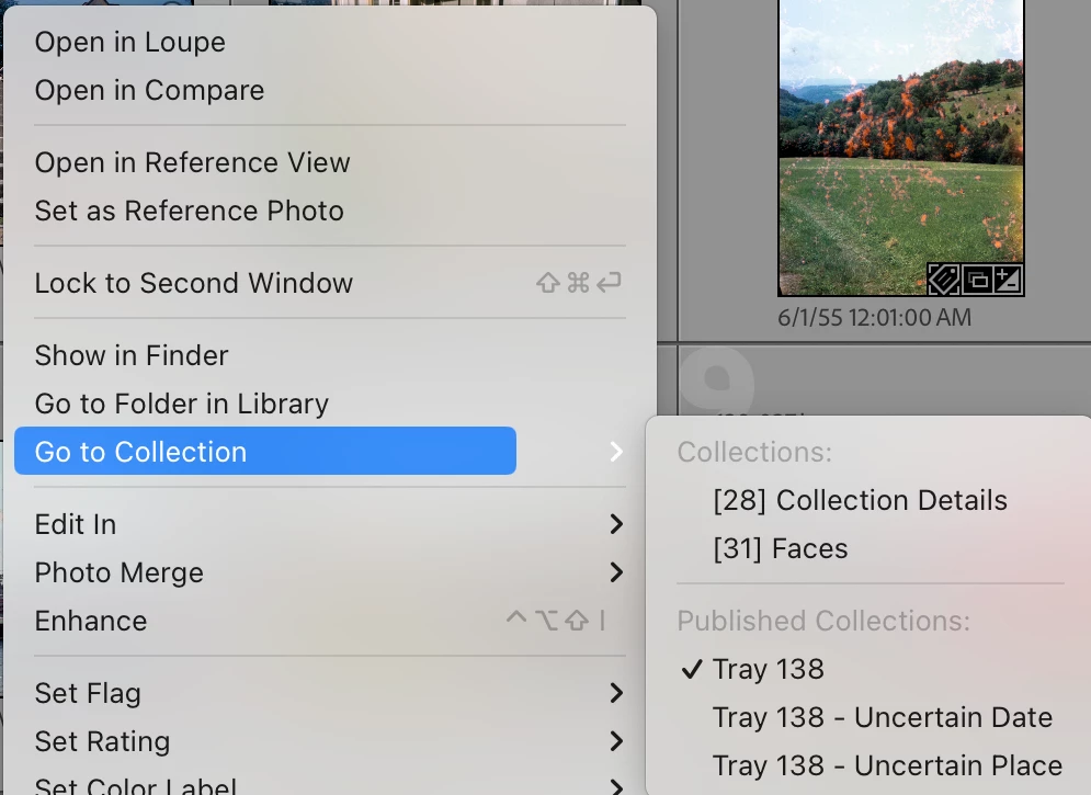 the publish service collections do not show up in the right click menu "go to collection". I'm finding it baffling that there is distinction between normal collections and the ones inside publish services. They are all collections, with the same rules etc.