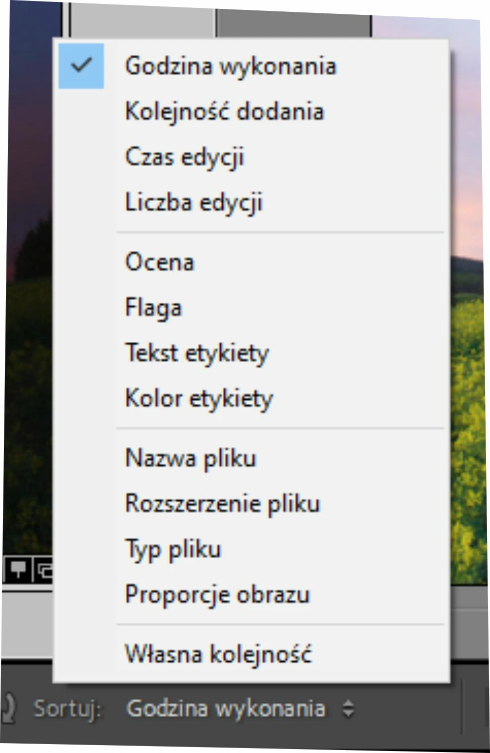 i mozliwość wyboru sortowania własnych preferencji z Exif