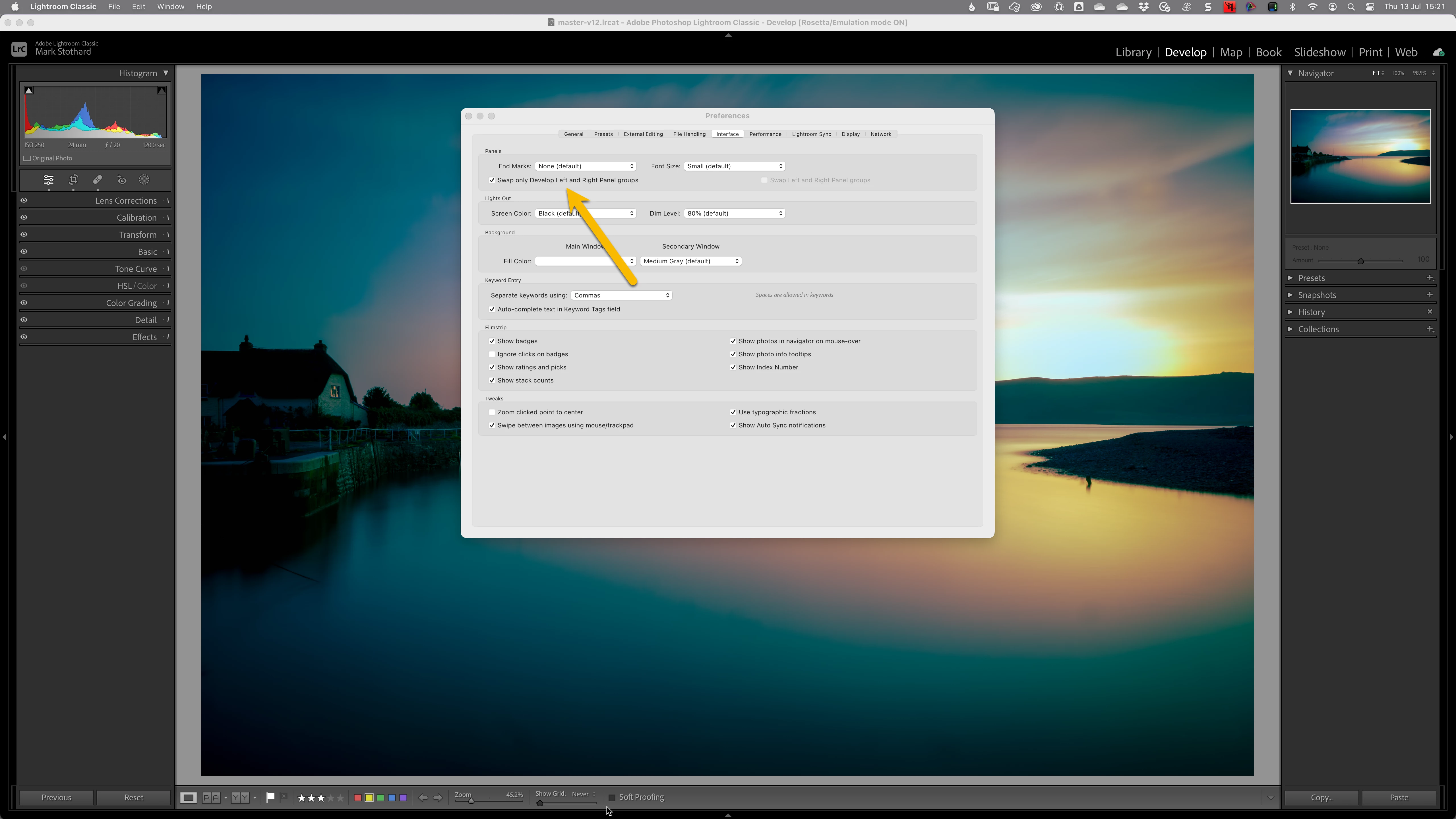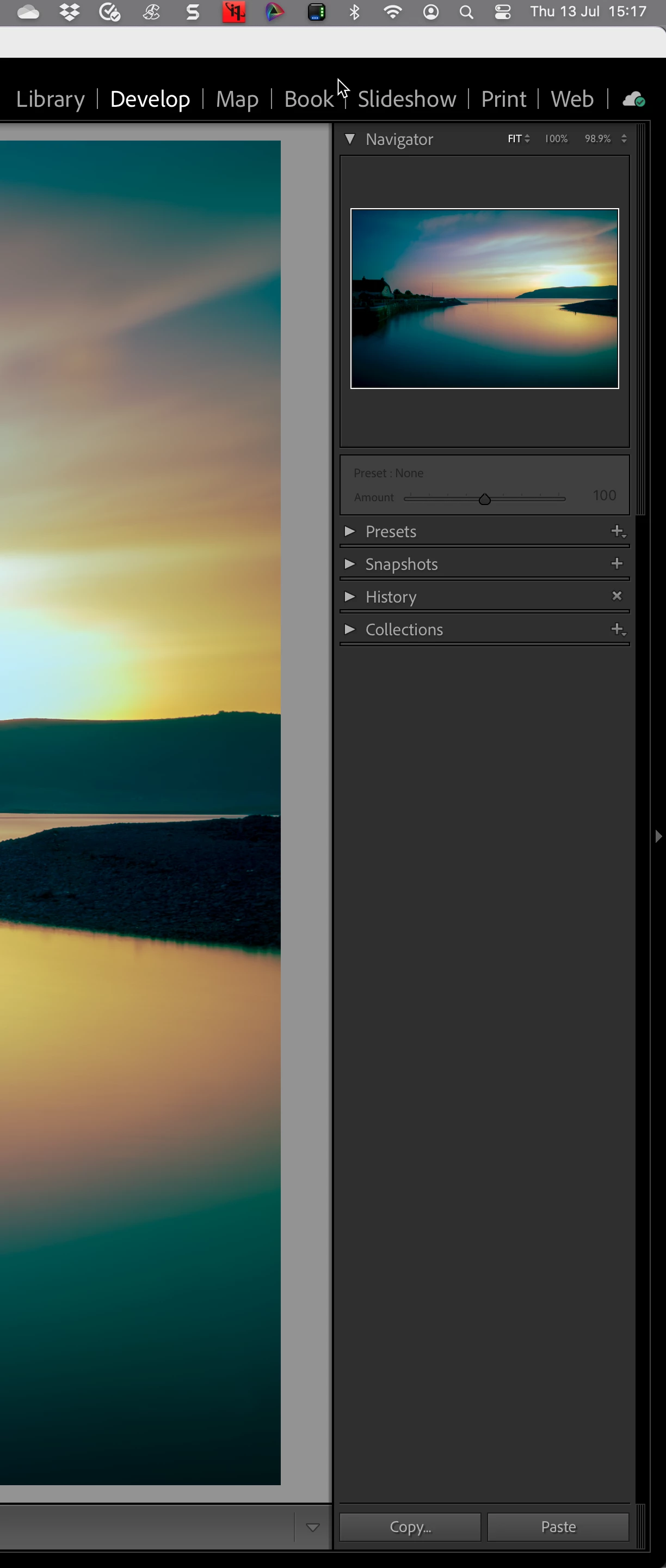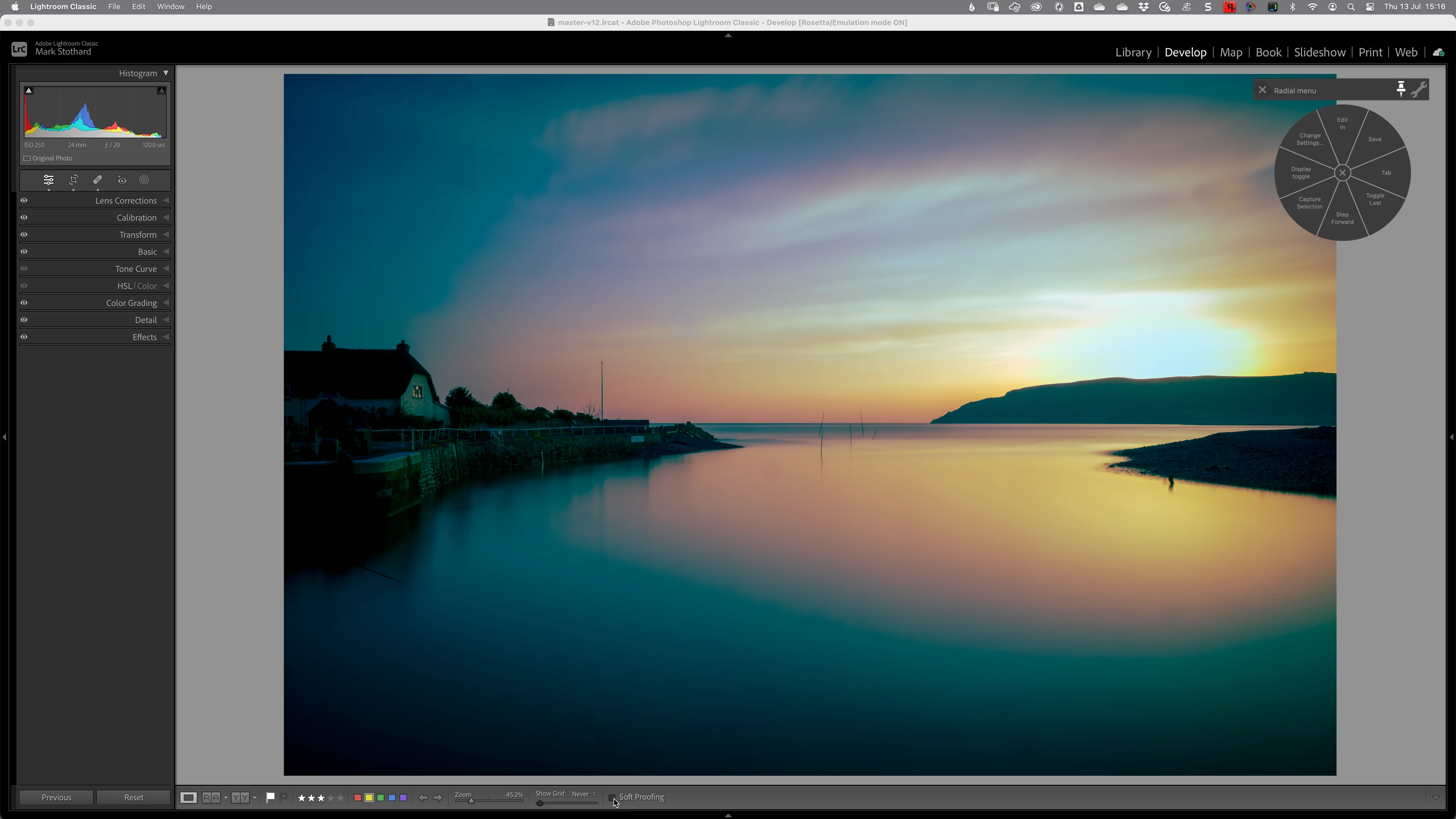 However, as a righty, I use it with my Wacom tablet, placing the on-screen radial menu on the right-hand side of the screen and having the develop panel on the left. My Wacom tablet is on the right side of my desk, being right-handed.