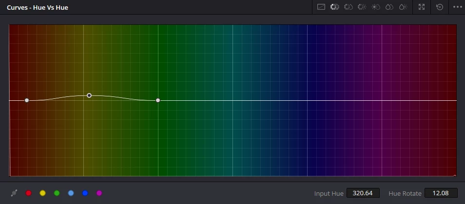Just as with the Color Mixer sliders, I can take an input hue and rotate it. Unlike the Color Mixer sliders, I can decide the precise range of the input hue(s) and create a smooth adjustment.