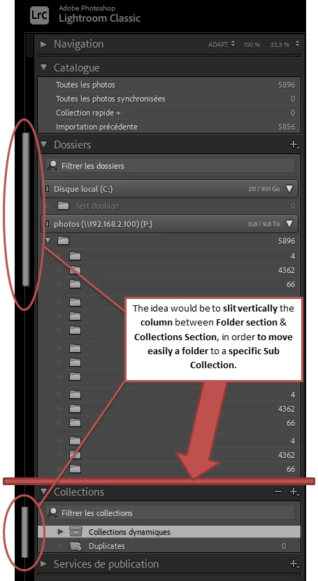 In the Library module, it would be absolutely fantastic to be able to vertically split the Left Column.