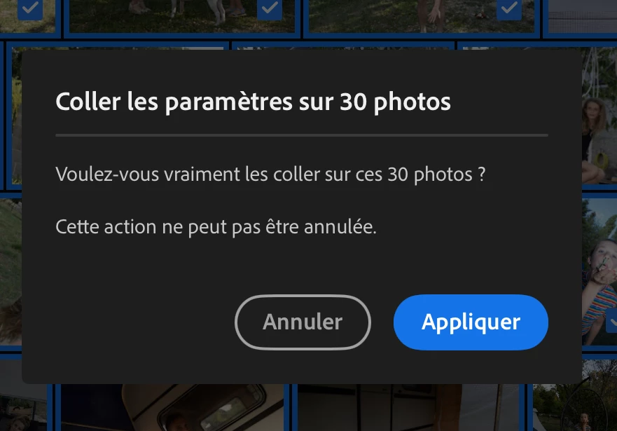 Bonjour ! Ayant acheté un iPad très récemment pour la retouche photo, je trouve mon expérience sur Lightroom cloud vraiment ergonomique mais une chose me chagrine : il est impossible de revenir en arrière après avoir collé des paramètres sur un groupe d'images. C'est malheureux car c'est toute la praticité de l'application à la base.