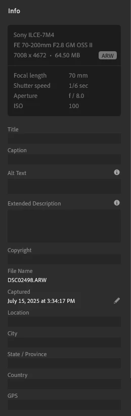 Hello, it would be amazing if the Copyright filed auto populated with the copyright information assigned in-camera. Thanks!
