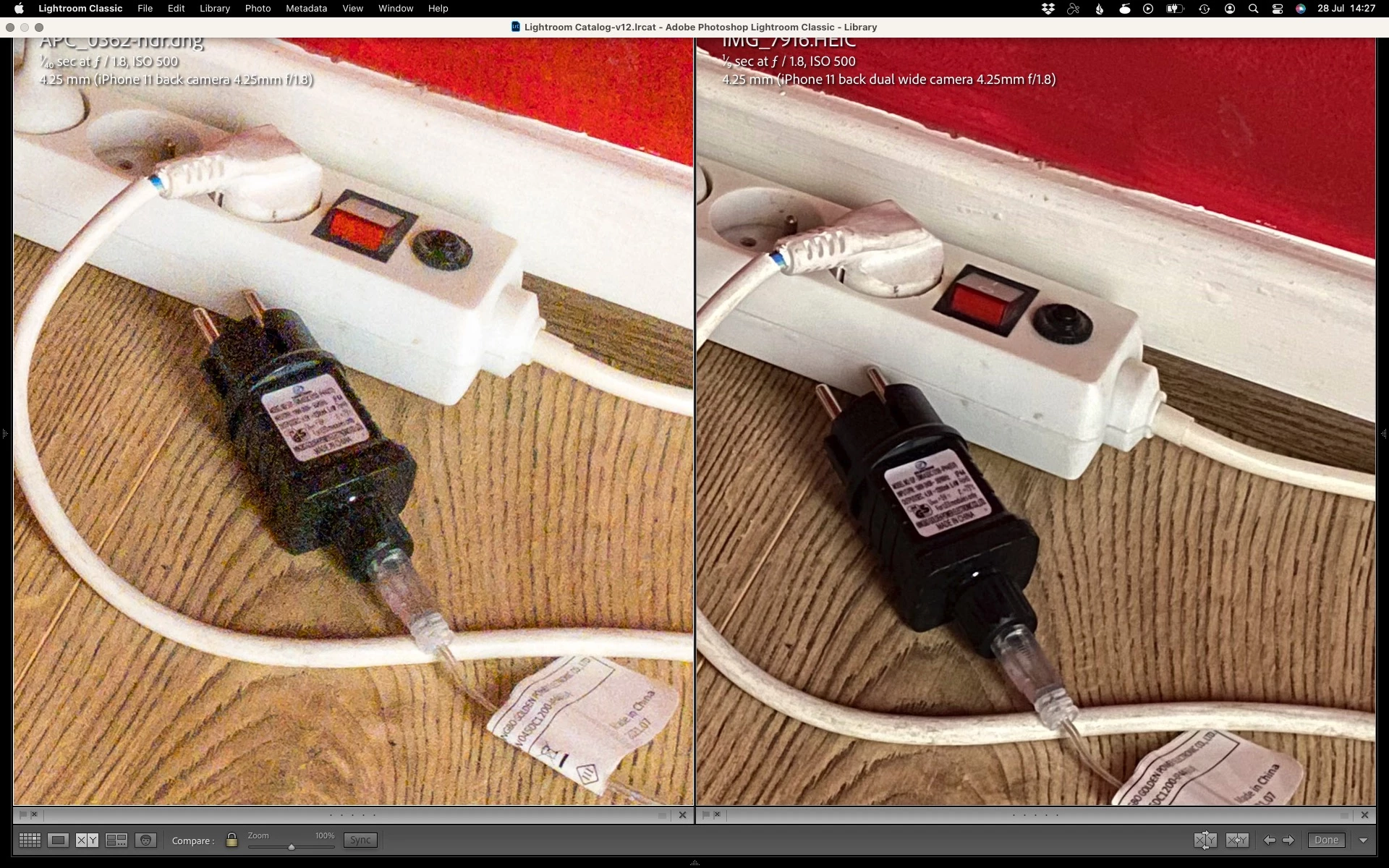 On the screenshot below, a 100% comparison of an HDR (best case, using LR app) and HEIC image. Granted, the heic surrfers of (exessive) smoothening, but the better SNR thanks to computational photography still favors the latter.