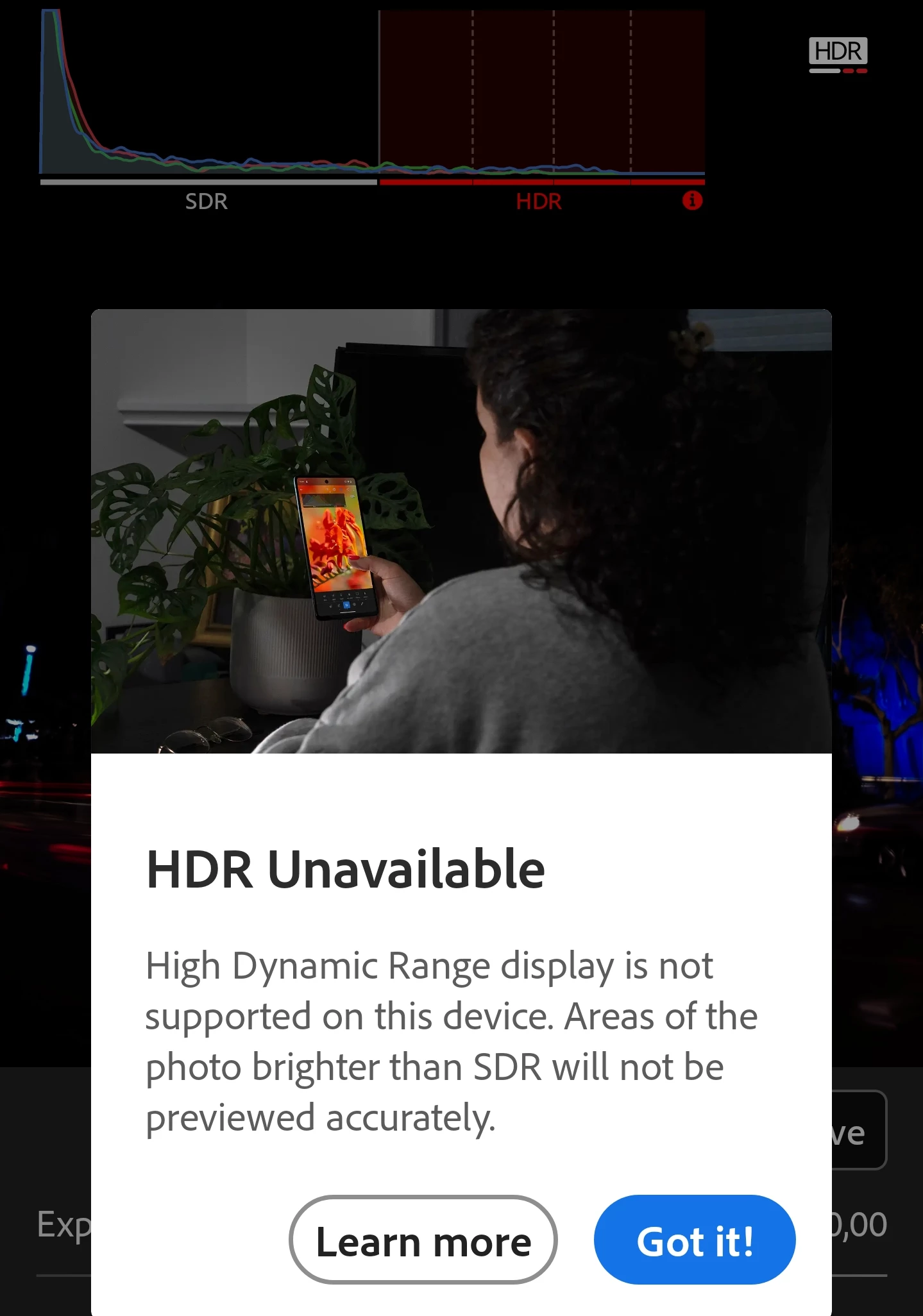 Expanding this functionality to include more devices would enhance the experience for many users who have invested in top-tier smartphones. I hope Adobe considers updating Lightroom Mobile to enable HDR features across a broader range of supported devices.