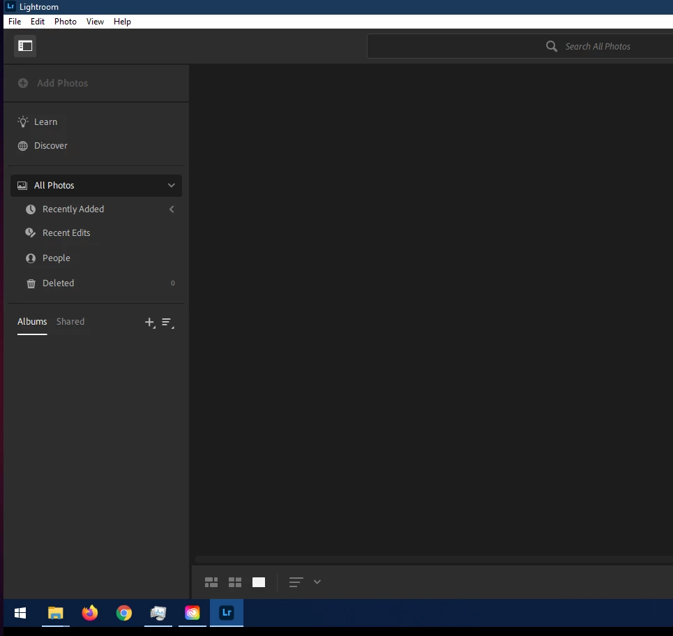 I cannot import photos in lightroom on windows PC. The "add photos" button is greyed out.  Other adobe prgrams are working fine.I already tried to alt shift click to go back to default preferences but problem remains. Also uninstalled and reinstalled lightroom and still cant import photos. Anyone suggestions?