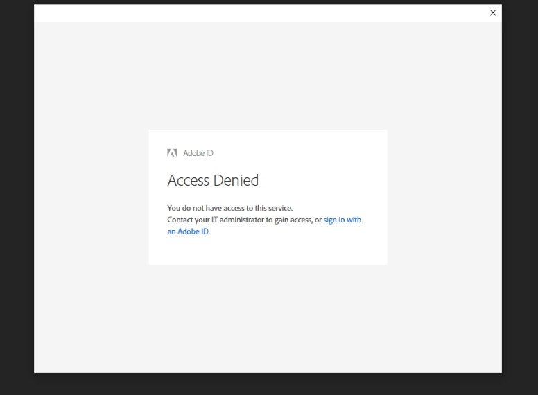 Our school recently purchased a bunch of Adobe Creative Cloud shared device licenses. Every application lets staff and students log in and use it (once installed on the PC) except Lightroom. Lightroom always gives the error below "Access Denied". We can't see why people aren't able to access this application. Is there something different with Lightroom? Is it to do with it wanting to create a folder (based on what Lightroom classic does which does work) or access Document cloud or something like that?