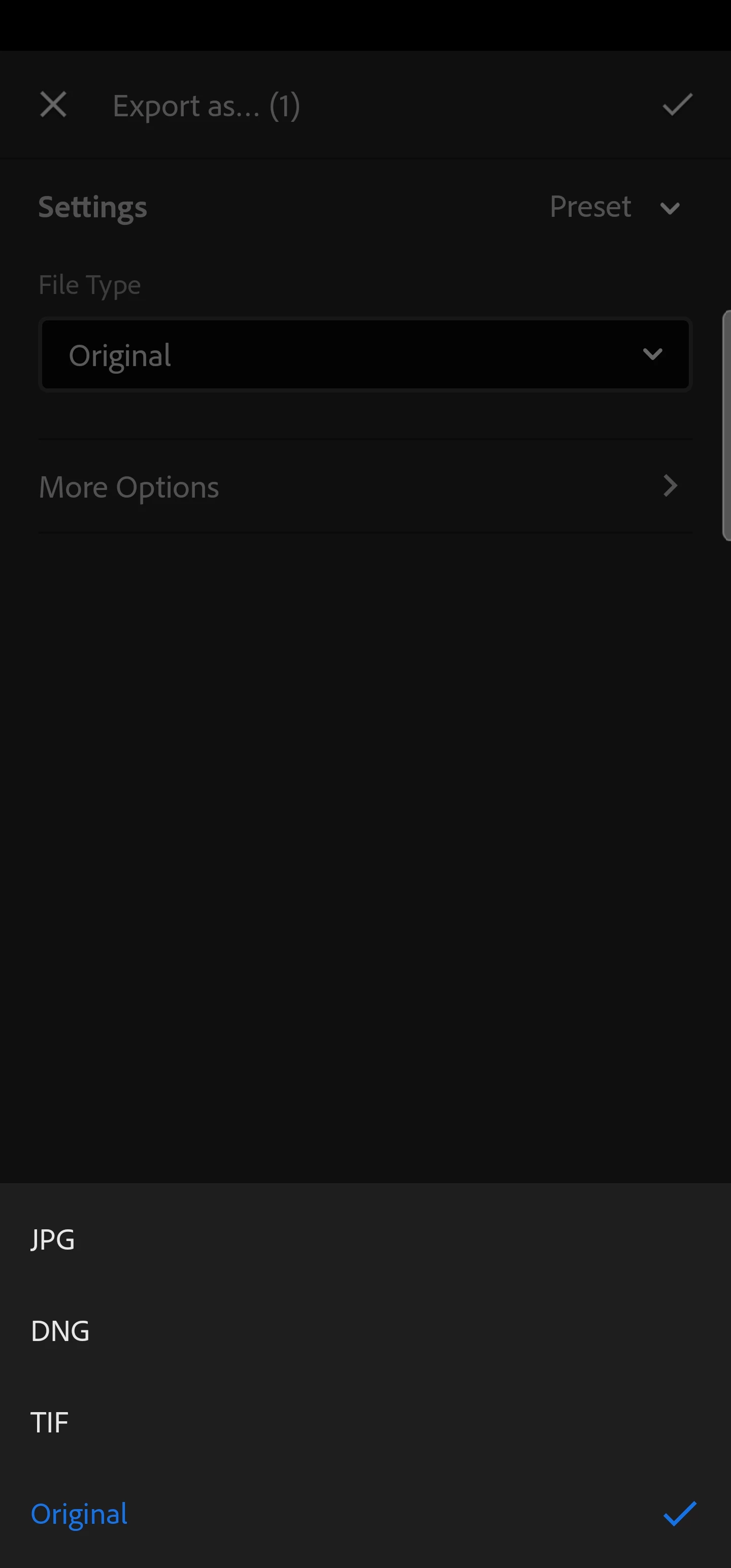 Is there any way to save png file in lightroom on ipad pro with m1 chip?
