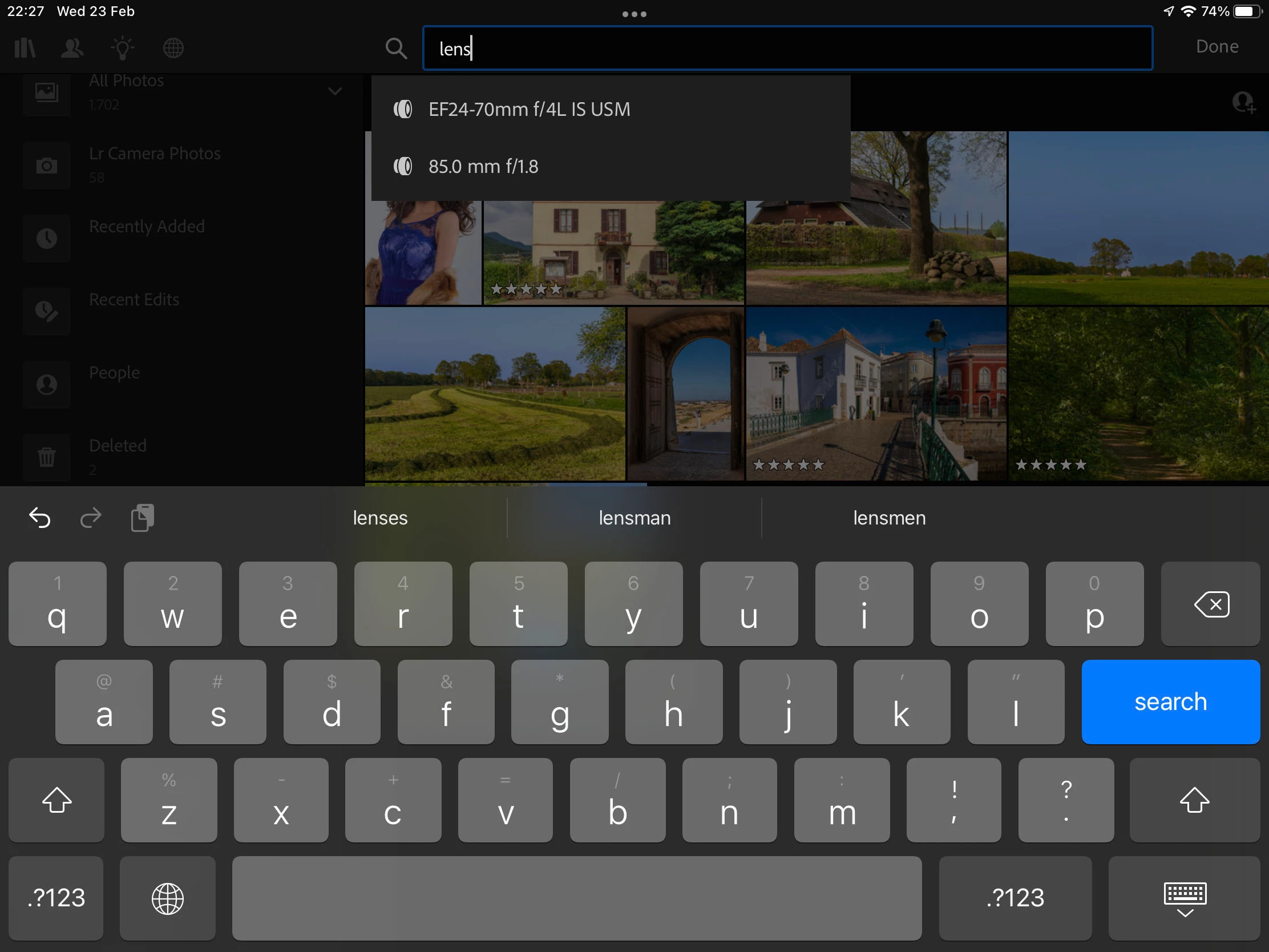 I would love to be able to filter by lens type, similar to how you can filter by camera body. Would make it easy to see all photos taken with my 50mm, 23mm, 90mm etc. at a glance. Would also want to be able to see my raw vs JPEG files without the cumbersome searching of “.jpeg” in the search bar.