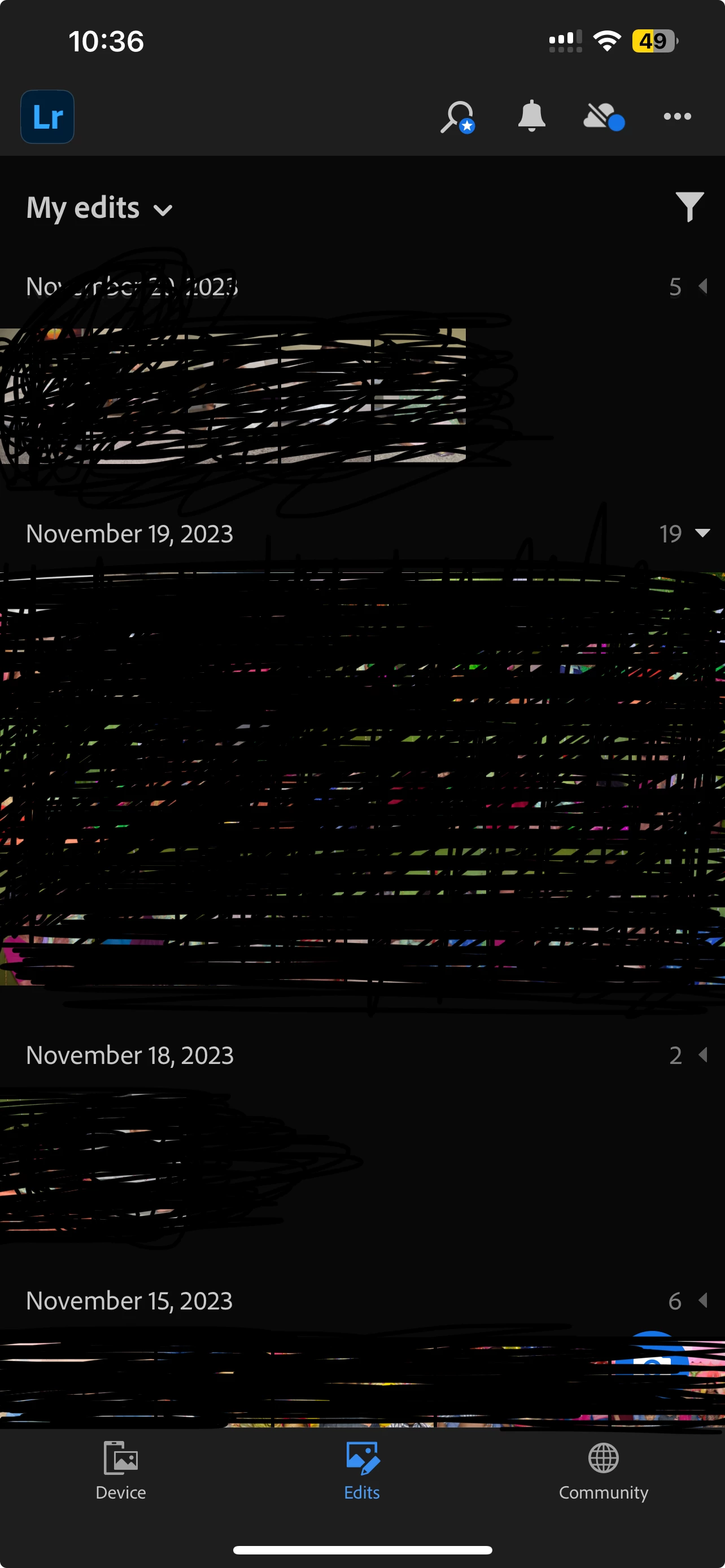 True. I see that sort by capture date, modify date, and etc option is still available for unedited photos along with filter option, but for myedits photos only filter option is available and not sort option.