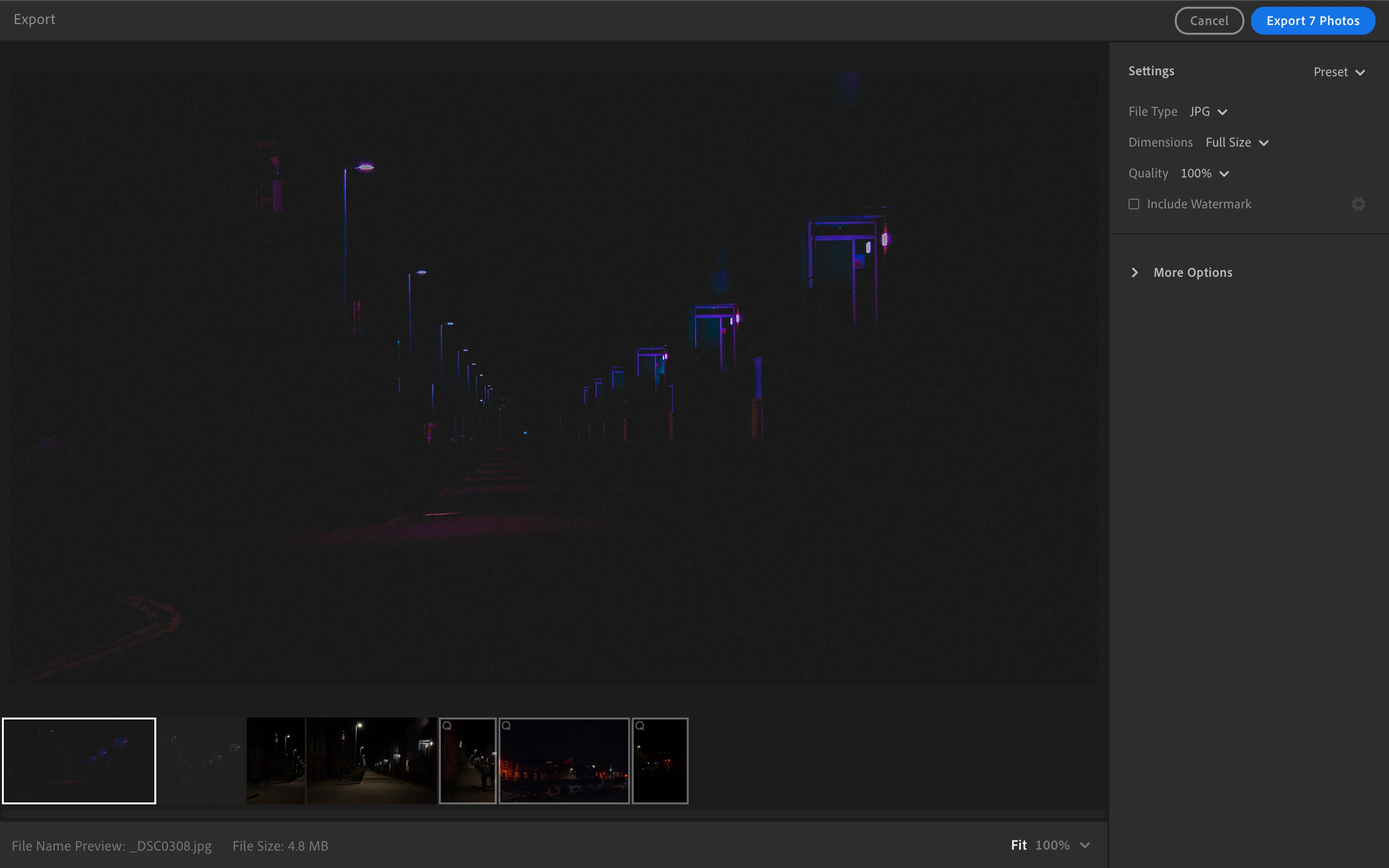 When you’re ready to export the images and open the export page, the selected image (or images) you’ve chosen will show up as normal on the export filmstrip, and to the right of them the queued images will be visible. (export filmstrip example below)