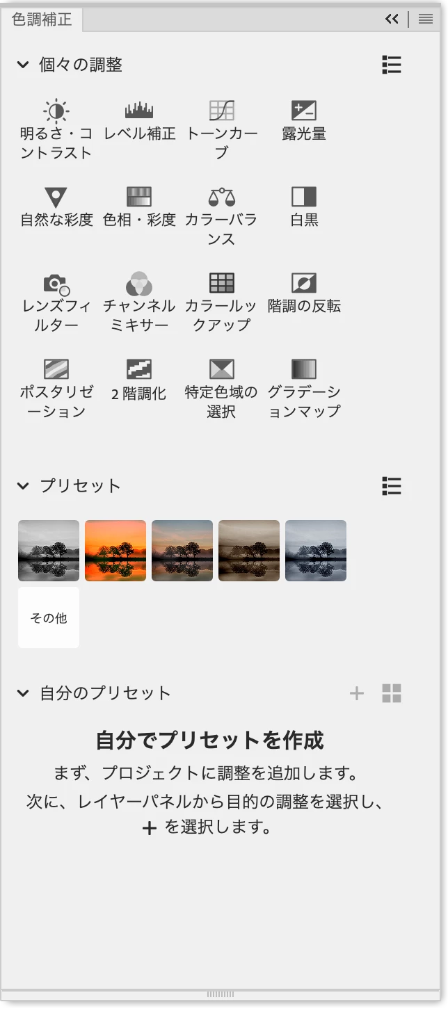 色調補正パネルに最新バージョンで「説明文」がついているが、これを非表示にして欲しい(今までと同じアイコンのみにして欲しい)