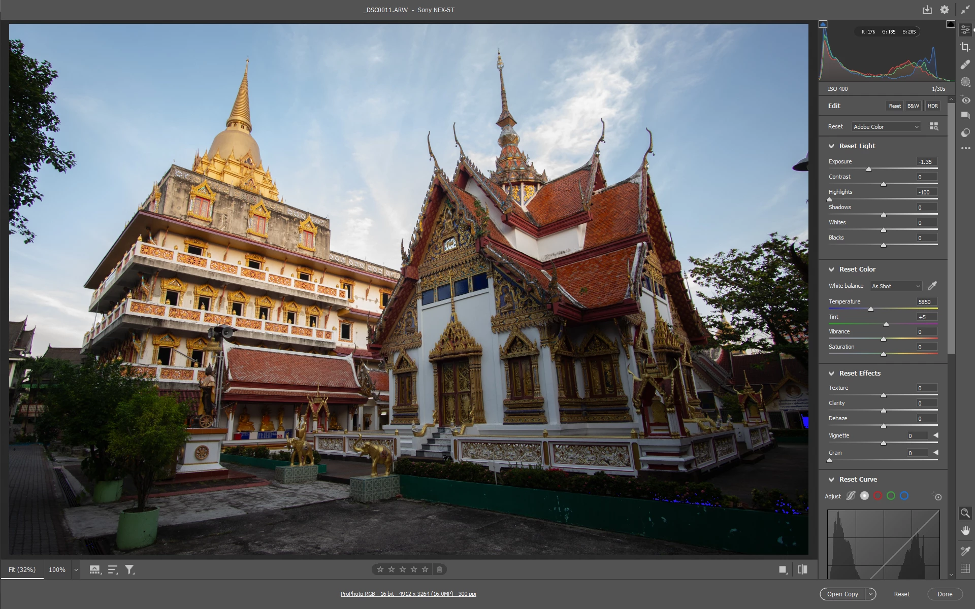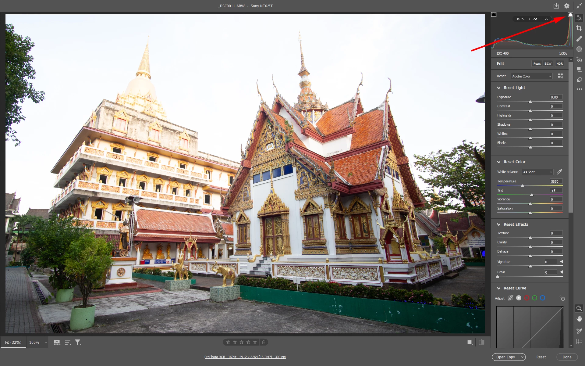 Now i look at ACR monitor and i see sky is properly exposed.