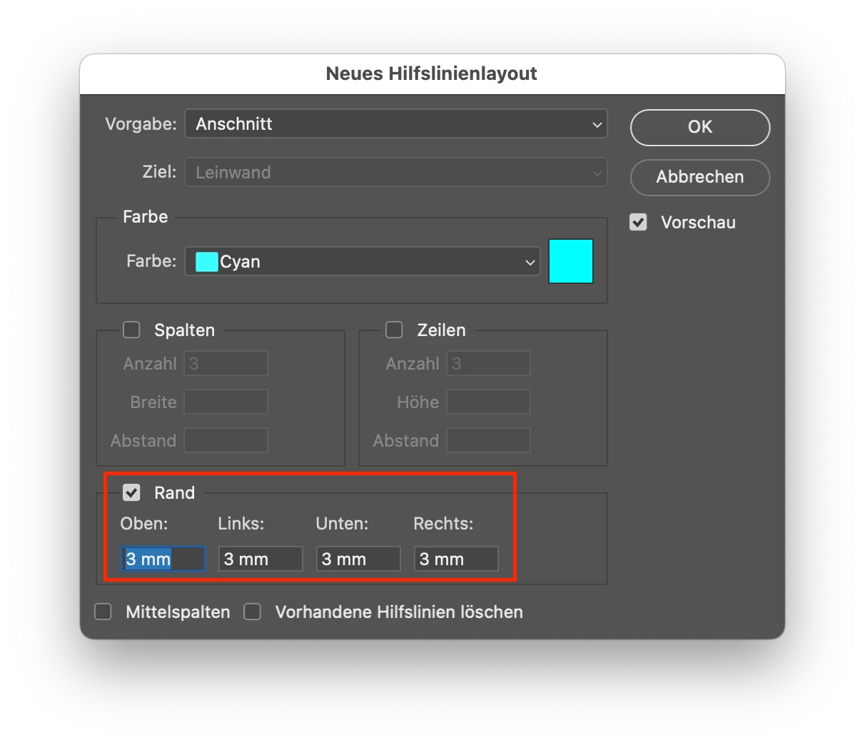 Als Illustratorin muss ich oft den Anschnitt zur Druckgröße der Illustration hinzufügen.