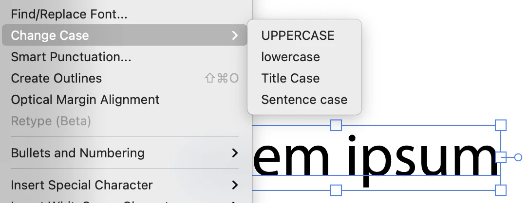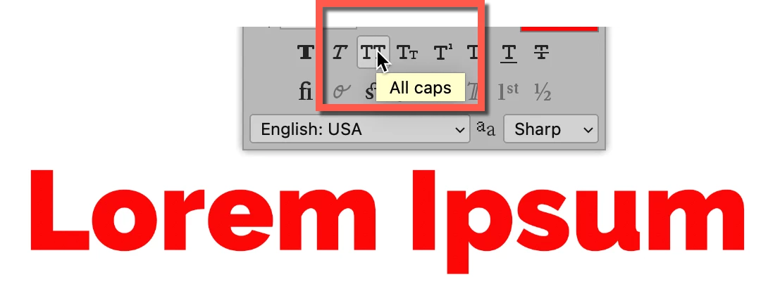 I'm looking for the feature of being able to convert a capitalized text to lowercase when we paste it into photoshop (although the font supports lowercase). There is a feature to convert from lower case to upper case, but we cannot do the opposite.