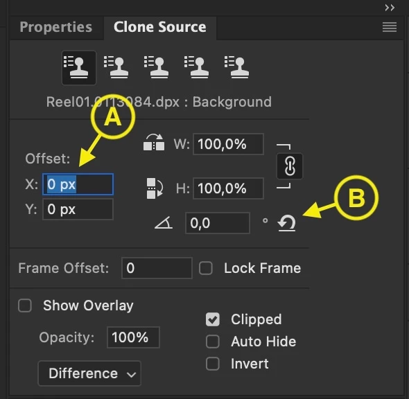 I have been searching for this without any luck. Is there a simple solution to reset transform (position, scale) values to "0" in the Clone Stamp tool? (A)