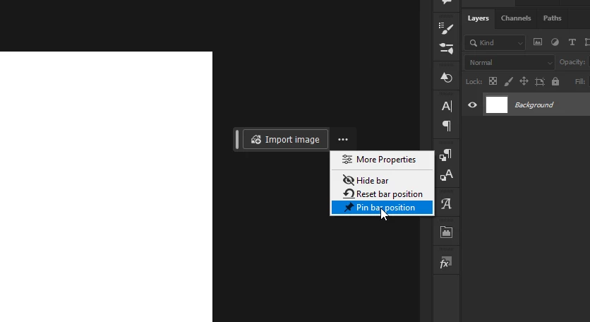 I know that you really want to make sure users know about new features, but the contextual task bar is extremely poor at positioning itself dynamically. It's constantly jumping around, positioning itself in the way of the image you need to work on. Why not just make it a dockable or just put it at the top like all the other contextual tool taskbars? I really don't need it in my face the whole time to know it's there. I typically have to hide it completely until I need it, then I need to turn it back on from the menu, only to turn it back off when I'm done. It's so different than all the other task bars, but why?